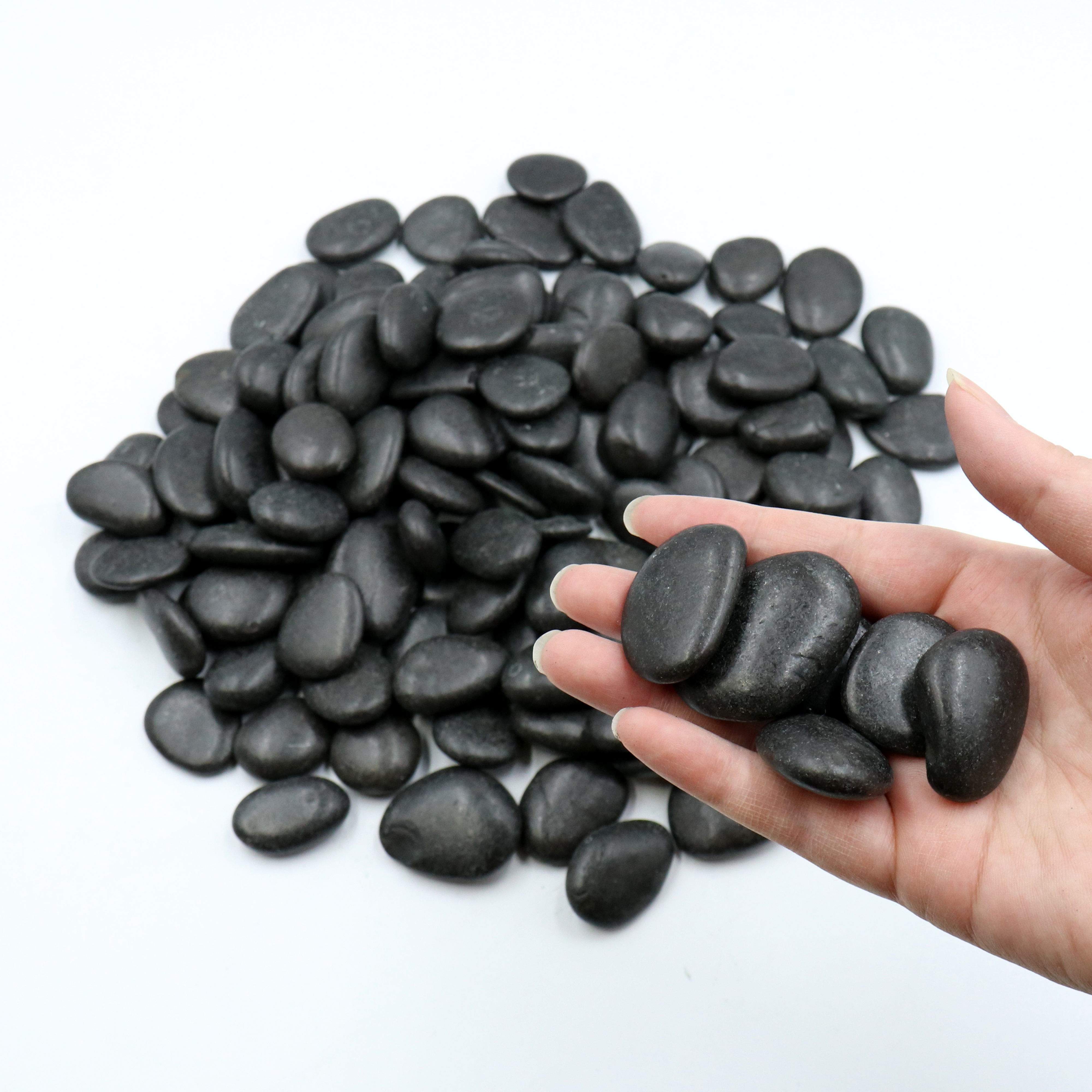Polished Black Pebbles are unique highly decorative black pebbles with a superior polished gloss surface that stays black when wet or dry. They are perfect for a landscaping or garden bed & rock garden & water features and walkways, they are smooth and look even more striking when wet.